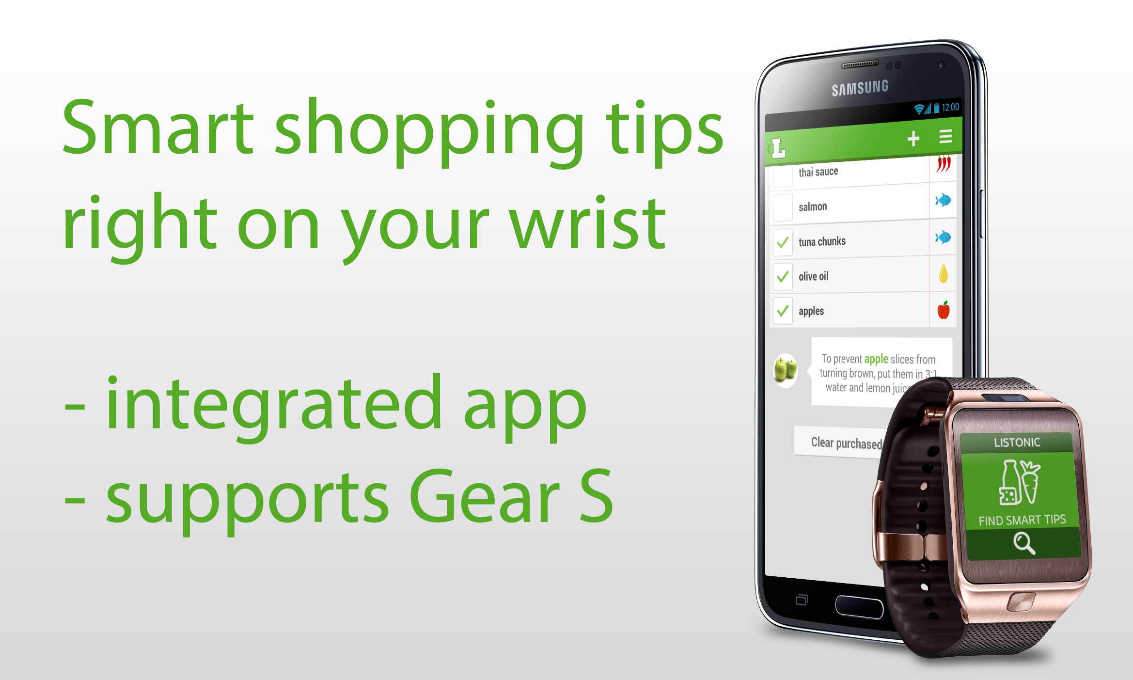 Learn smart tips that will change the way you buy, cook & use your favourite foods. Listonic will help you make both shopping and cooking easier. It's your handy food advisor, right on your wrist.